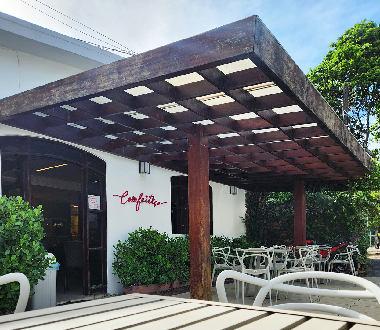 Contamos com um espaço interno climatizado, ideal para encontros e reuniões, além de área externa com acesso para cadeirantes. Um ambiente aconchegante para curtir momentos especiais com sabor e tranquilidade.Seja para saborear um bolo recheado com calma ou para levar delícias para casa, o Comfeitiço é o lugar certo para quem valoriza o sabor da tradição com o toque do afeto.